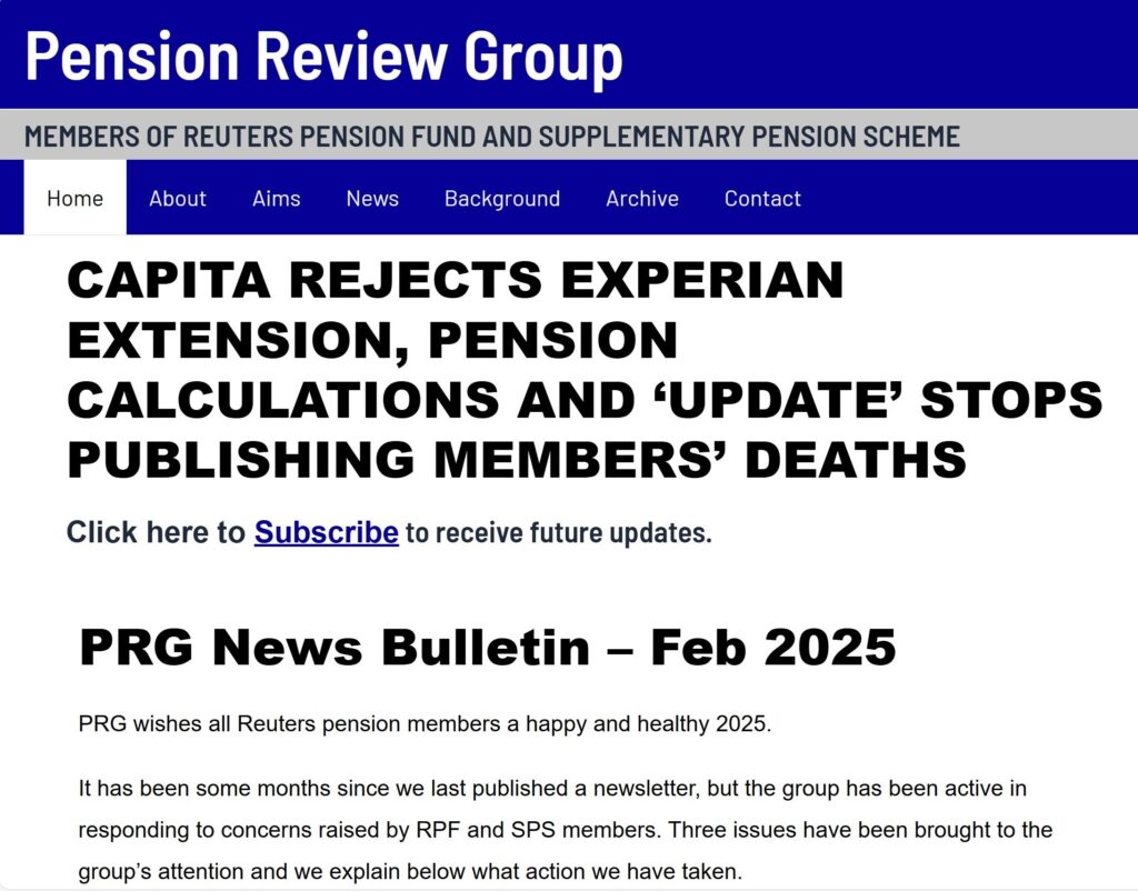 PRG News Bulletin – Feb 2025 PRG wishes all Reuters pension members a happy and healthy 2025. It has been some months since we last published a newsletter, but the group has been active in responding to concerns raised by RPF and SPS members. Three issues have been brought to the group’s attention and we […]