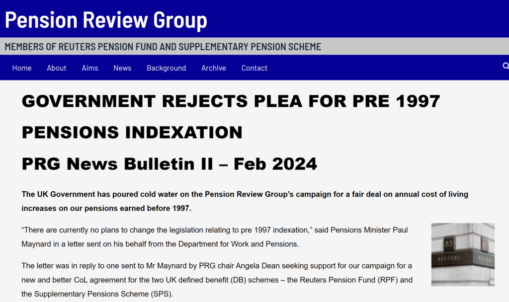 GOVERNMENT REJECTS PLEA FOR PRE 1997 PENSIONS INDEXATION PRG News Bulletin II – Feb 2024 The UK Government has poured cold water on the Pension Review Group’s campaign for a fair deal on annual cost of living increases on our pensions earned before 1997. “There are currently no plans to change the legislation relating to […]